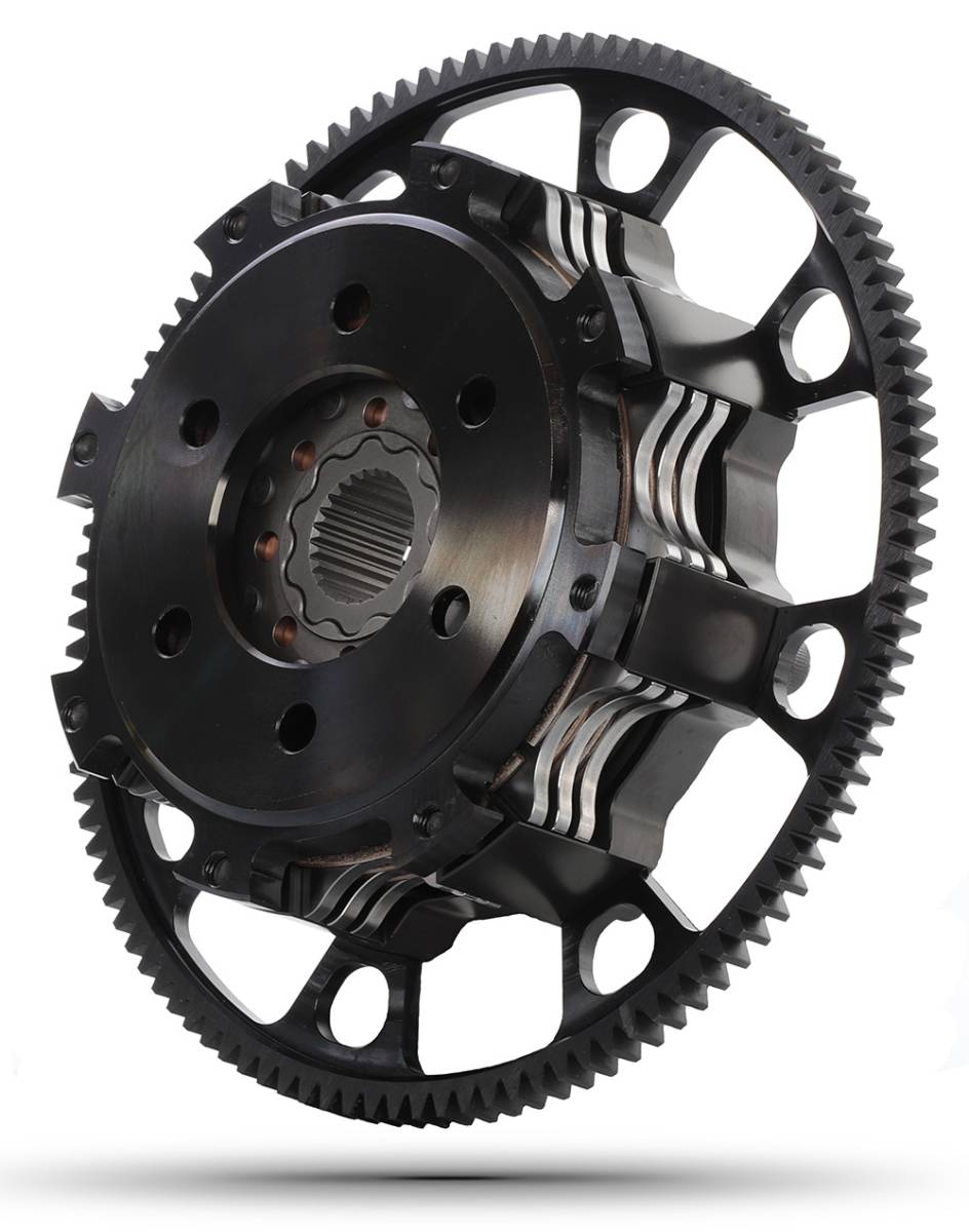 The cover assembly is machined from billet aluminum and is then Type 3 hard anodized. Our billet covers have roughly 25% more tensile strength than the competition’s cast unit. By focusing our ability on machining the strongest cover possible while maintaining minimal weight, we are basically able to eliminate any flex in the cover. Our billet covers see only .003" of flex where as a cast or stamped unit can see as much as .030" of flex. By eliminating this flex in the cover, the driver is able to operate the clutch much more consistently and confidently. All the movement being applied to the diaphragm of the clutch from the throwout bearing is used solely to engage and disengage the clutch and isn't wasted by the cover flexing first. The strength of our covers also results in greater clamping force over the same amount of area vs. a cast or stamped cover. This means our triple discs are easy to drive and have superior clamping force to make sure all the power your engine is making is being utilized.