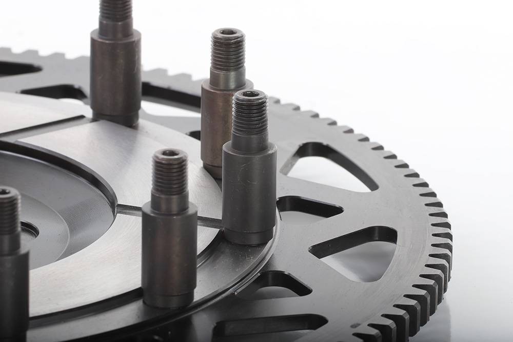 By increasing the pressure plate stands to 12-steel post versus the FX725 standard aluminum 6-post, the unit has a better structural integrity to handle more torque, abuse, and heat. High horsepower / race applications would cause the aluminum post to flex and wear due to the high amount of stress. To solve this weak point the stands were doubled to 12 and made from 4140 heat treated steel.